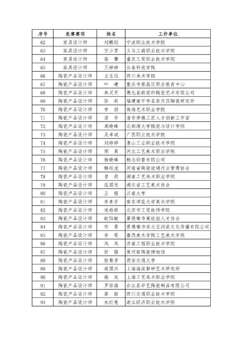 关于公示第三届全国工业设计职业技能大赛决赛裁判人员名单的通知