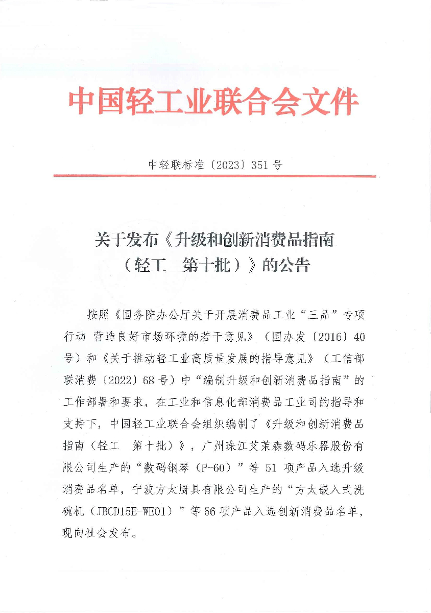 关于发布《升级和创新消费品指南(轻工 第十批)》的公告