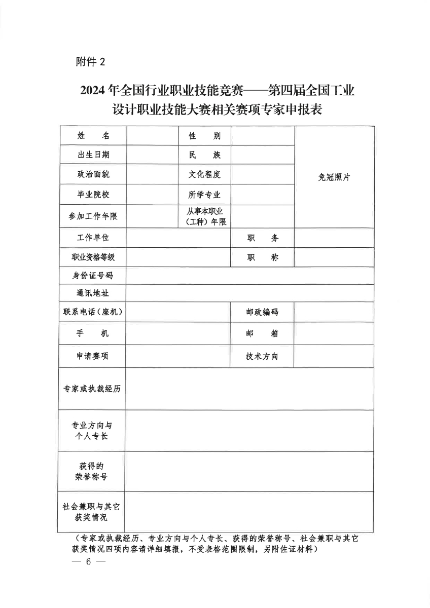 附件2:2024年第四届全国工业设计职业技能大赛相关赛项专家申报表.docx
