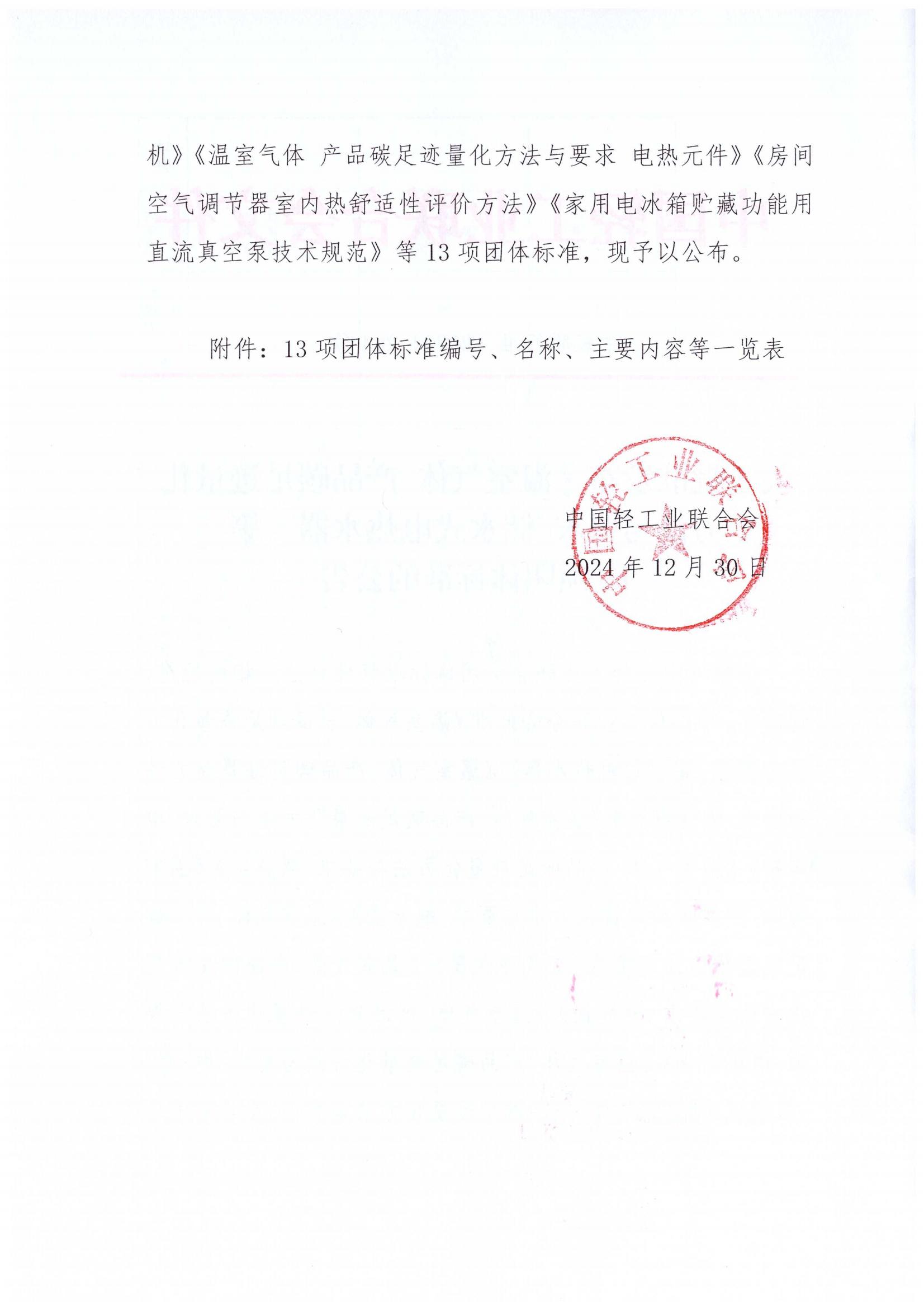 关于批准发布《温室气体 产品碳足迹量化方法与要求 储水式电热水器》等13项团体标准的公告